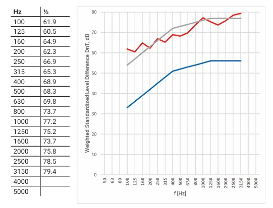 Wall: DnT,w + Ctr = 70 dB